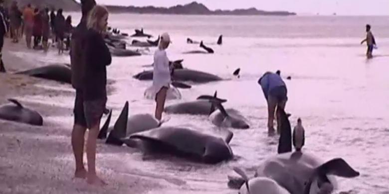kasus paus terdampar. Peristiwa Jumat ini menjadi yang terbesar ketiga